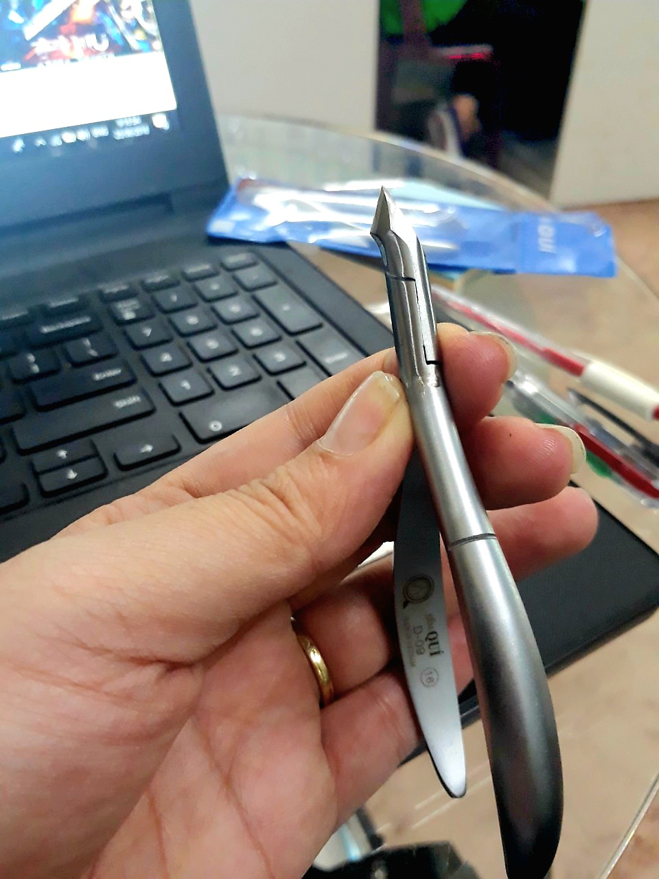 Tâm - Bình Dương, đang mài kềm khách và phụ vợ là thợ Nail, hiện đang kinh doanh kềm và mài kềm.
