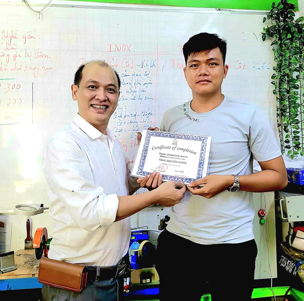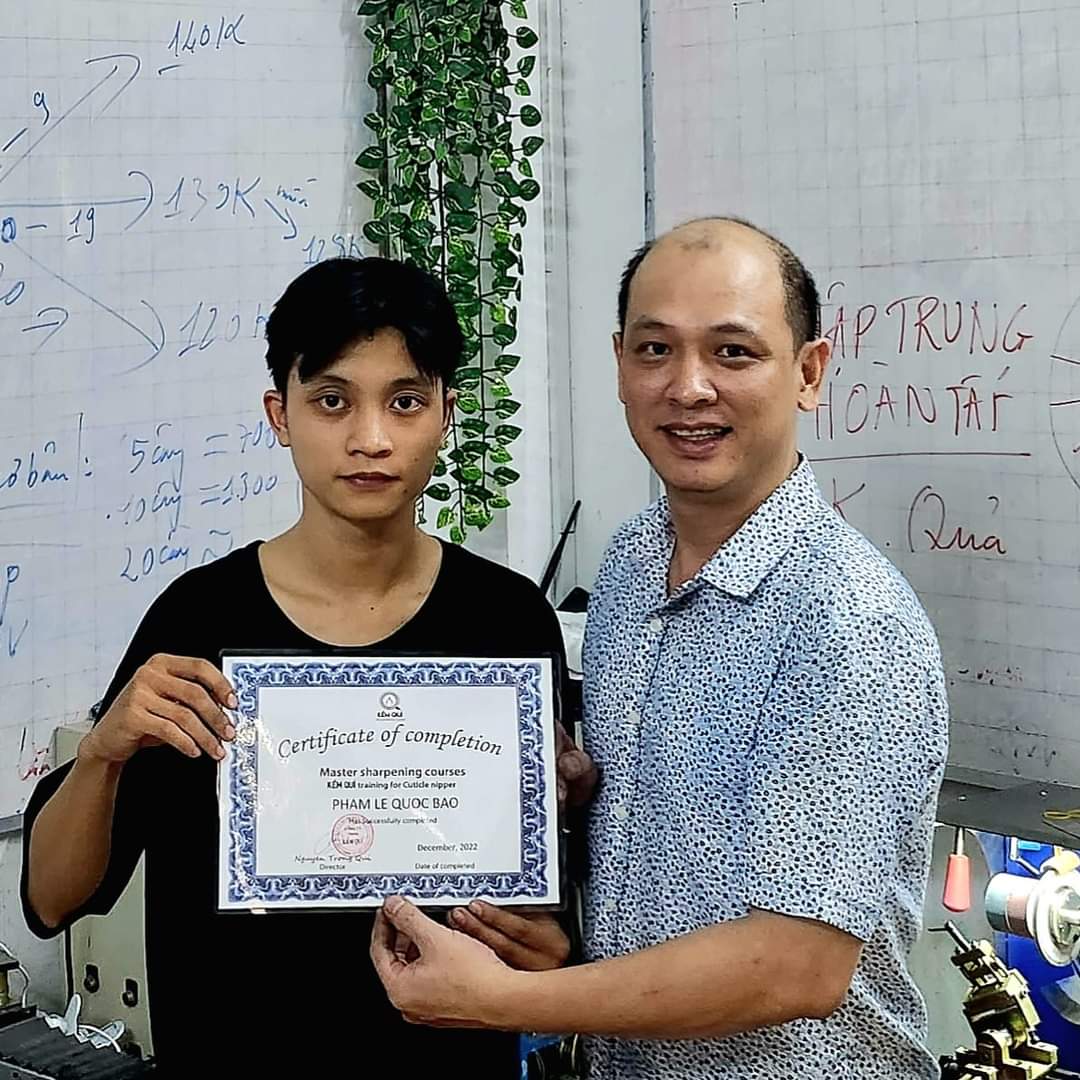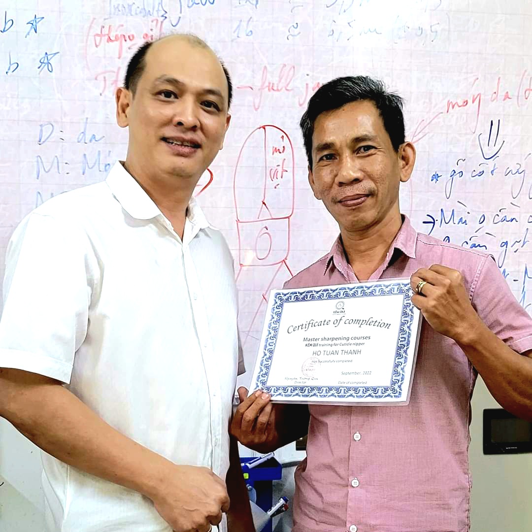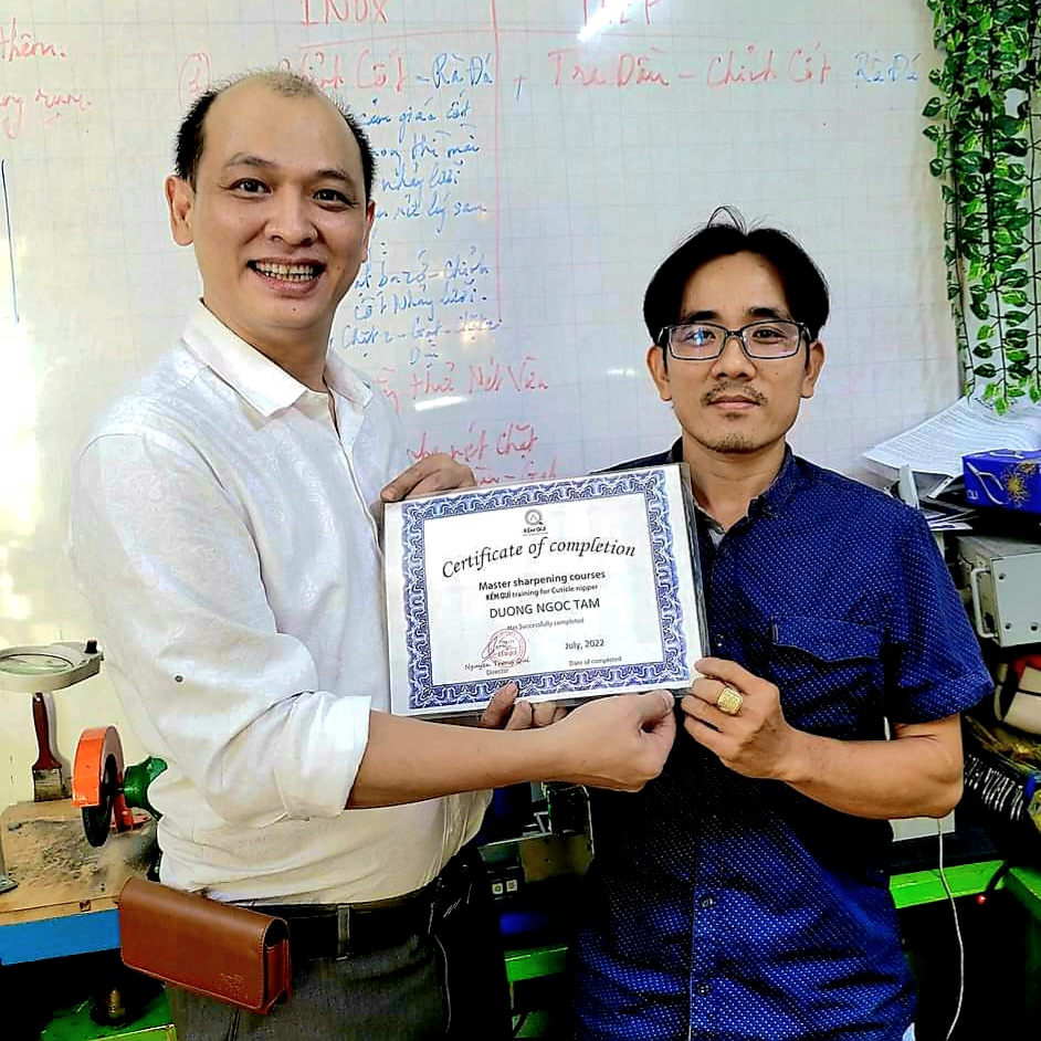 Trực tiếp đào tạo - Anh Nguyễn Trọng Quí kinh nghiệm ngành kềm, kéo, tông đơ hơn 20 năm - với Phương Pháp đào tạo AcceleratedLearning kết hợp kỹ năng Sư Phạm Nghề giúp các bạn trong thời gian ngắn nhất trở thành thợ mài kềm Nails bén nhất khu vực.