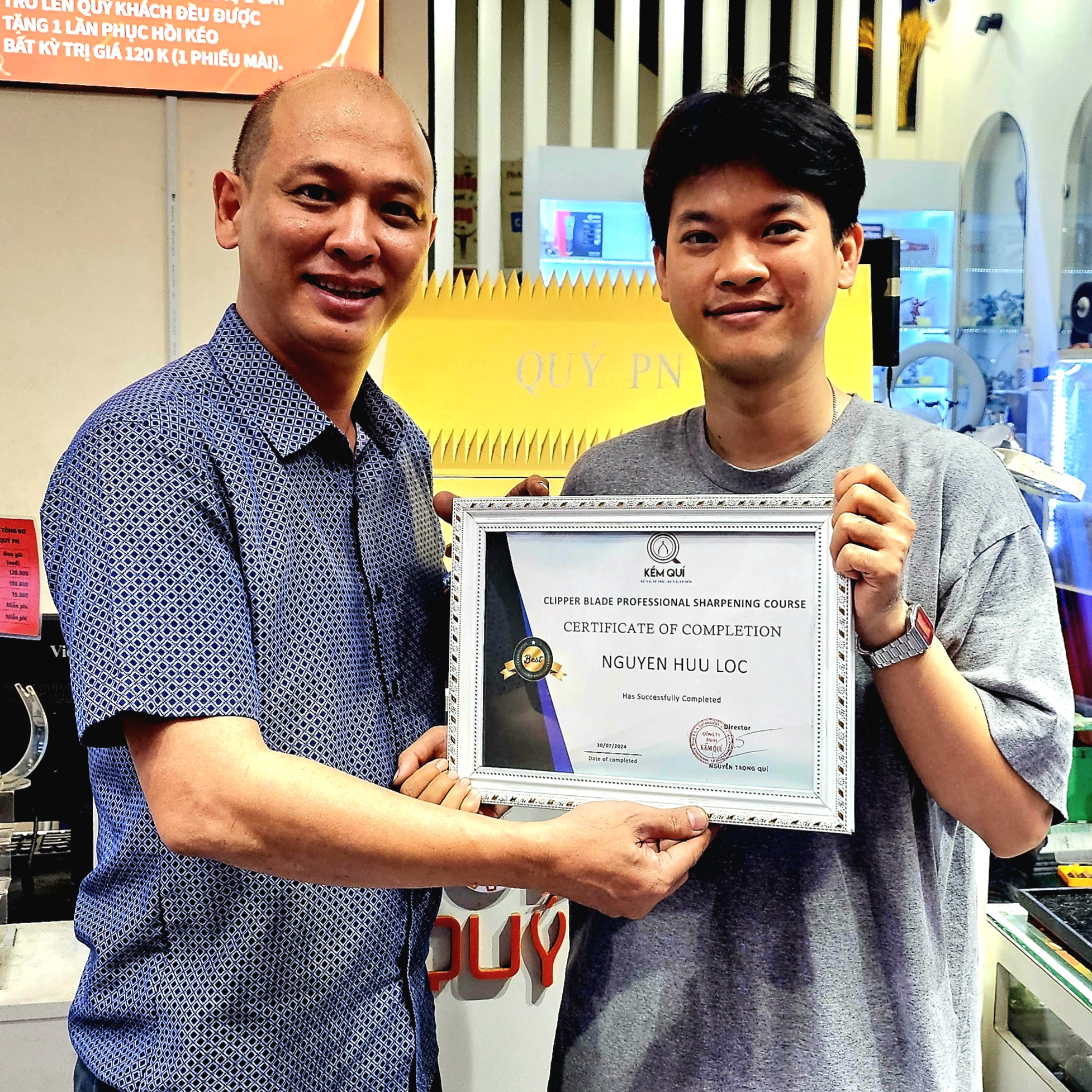 Trực Tiếp đào tạo, anh Nguyễn Trọng Quí - kinh nghiệm hơn 20 năm đào tạo nghề, học viên ra nghề mài tông đơ khá giỏi tại hơn 14 tỉnh thành đến hôm nay.