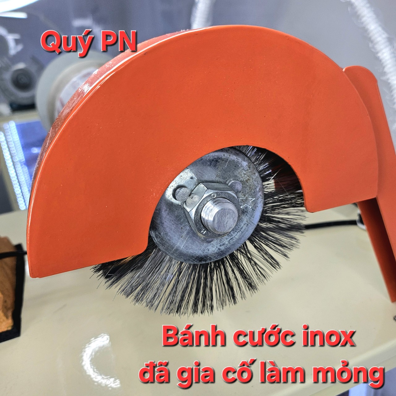 Bánh cước inox đã làm mỏng và gia cố chắc chắn đi cùng che bụi tránh văng cước vào mắt.