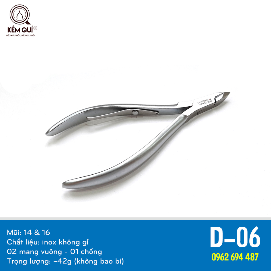 - Kềm Quí D-06 được làm từ chất liệu inox cobalt (thép không gỉ) đem đến độ bền bỉ vượt trội hơn các loại kềm thông thường khác.