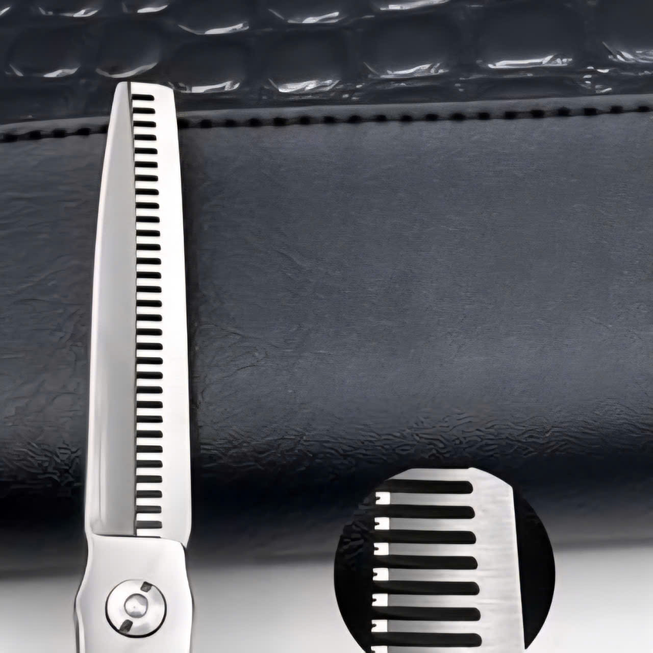 ✅ 4. Siêu bám: tạo thêm răng cưa nhuyễn trên kéo cắt, giúp kéo không chạy tóc (khách hàng cắt nét tóc nữ rất thích). Phí Dịch Vụ = 280 k/ 1 cây.